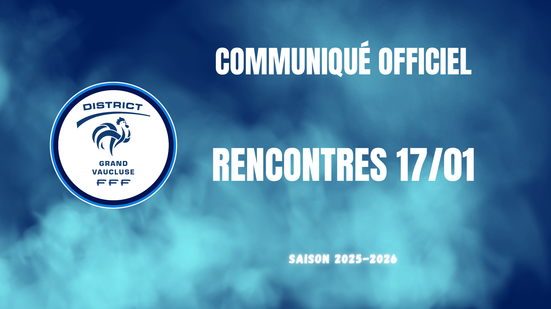 En raison des conditions météorologiques, toutes les rencontres de ce samedi 17 janvier 2026 sont annulés.